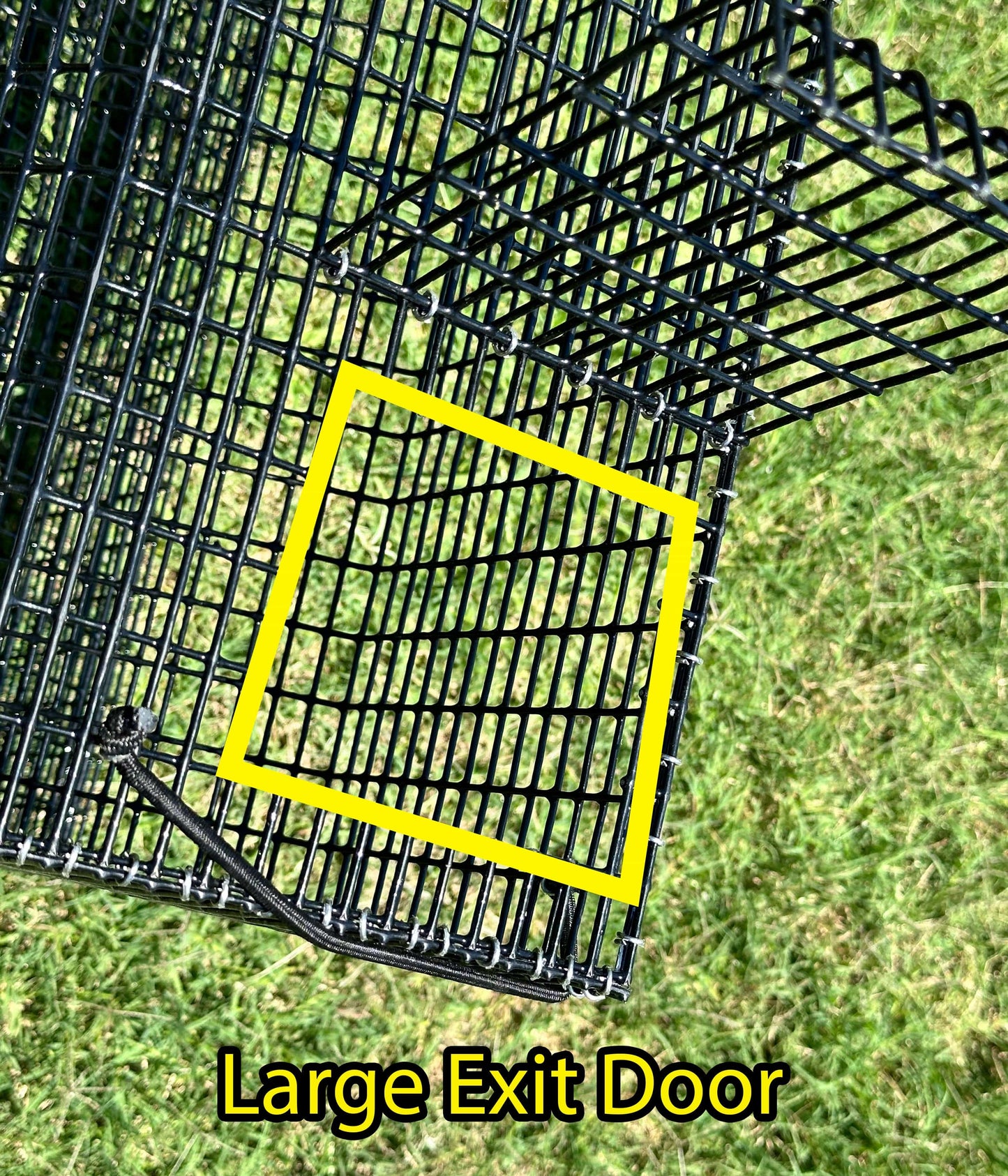 - Large Exit Doors allow for fish to be removed from the trap quickly!